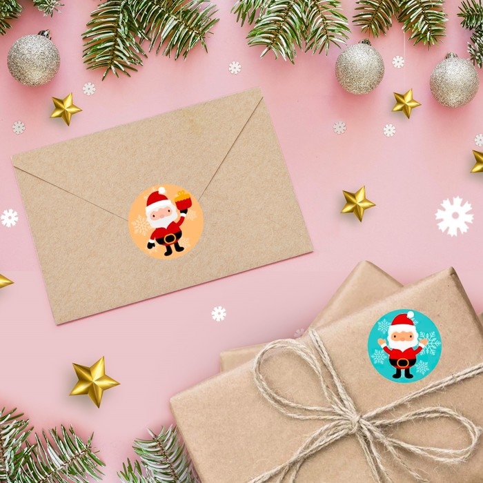 Новый год. Наклейки в рулоне "Милый Санта", 500 шт, 3,8 х 3,8 см