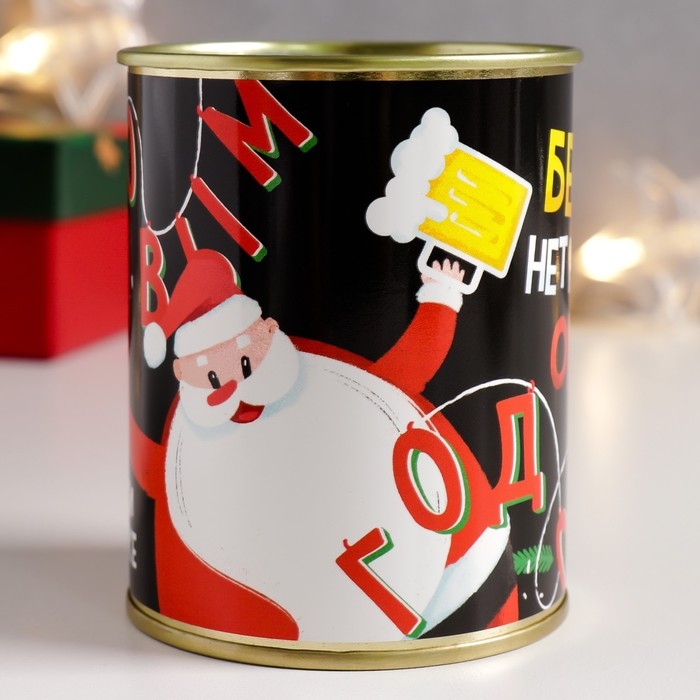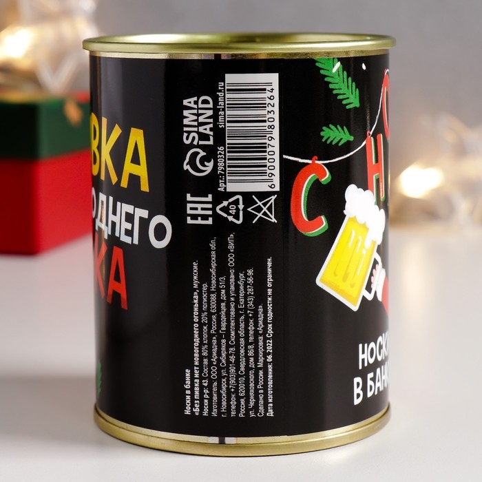 Носки в банке "Без пивка, нет новогоднего огонька" (внутри носки мужские, цвет чёрный)