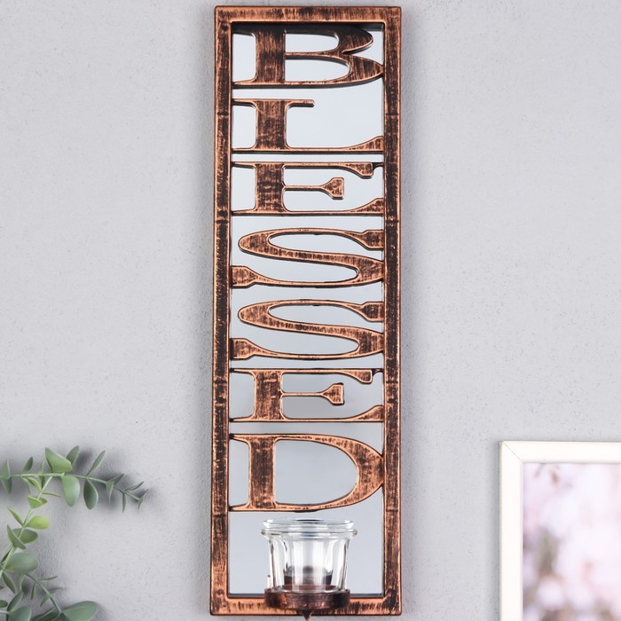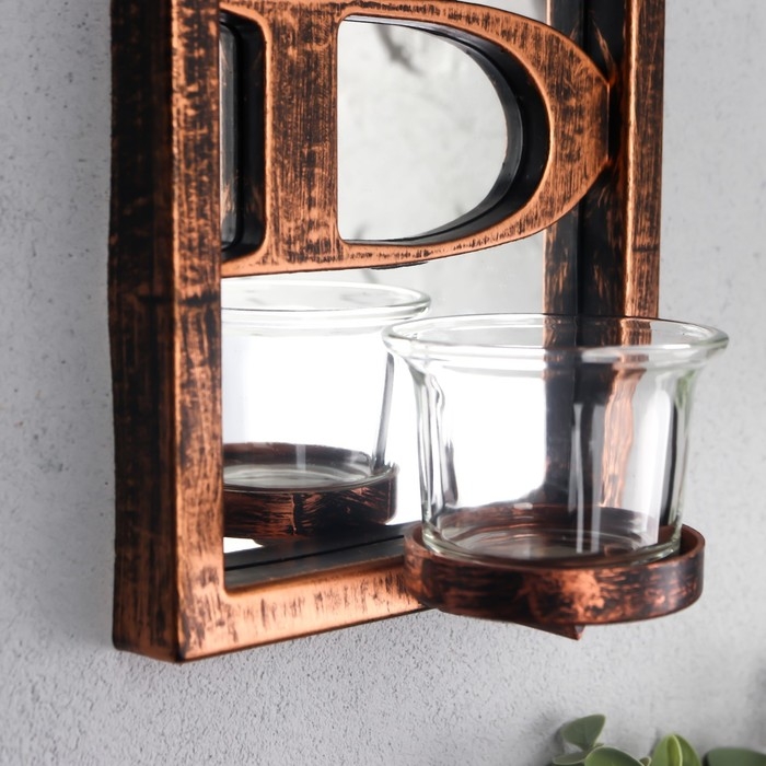 Подсвечник пластик, стекло на 1 свечу "Отражение благословения" d-4 см бронза 8х12х41 см