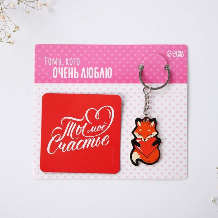 Брелок для ключей и магнит «Ты мое счастье», подарочный набор, 14,5 х 12,8 см.