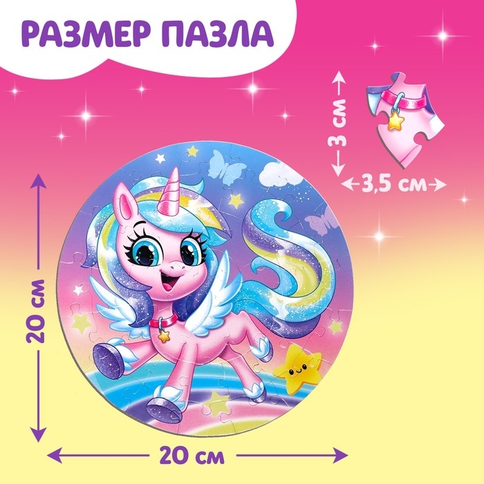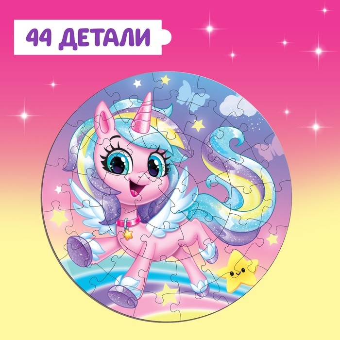 Круглый пазл в металлической коробке «Волшебный единорог», 44 детали