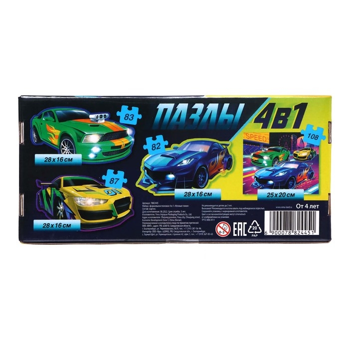 Набор с фигурными пазлами 4 в 1 «Ночные гонки»