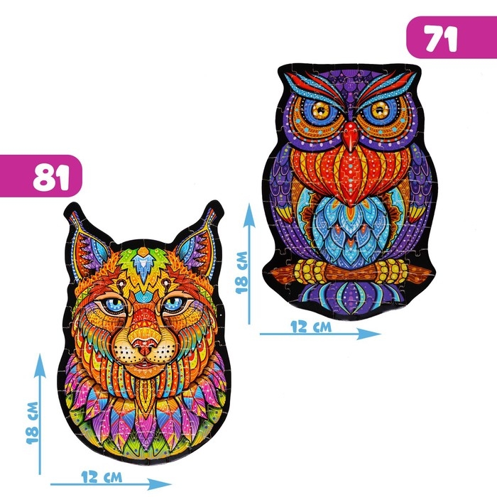 Фигурные пазлы 2 в 1 «Лесные хищники», 71 и 81 деталь