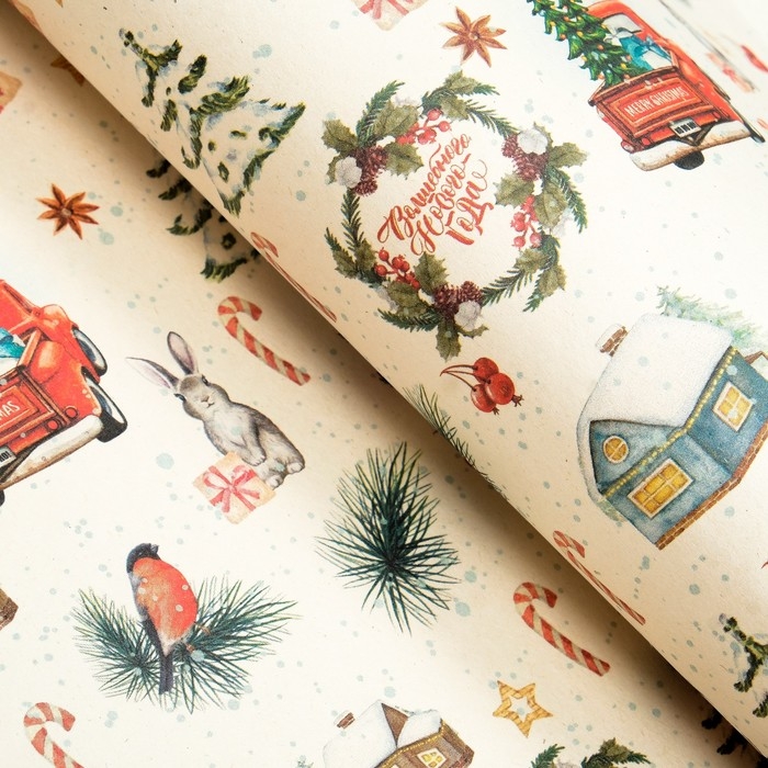 Новый год. Бумага упаковочная крафт "Волшебного Нового года!", 70 х 100 см,1 лист