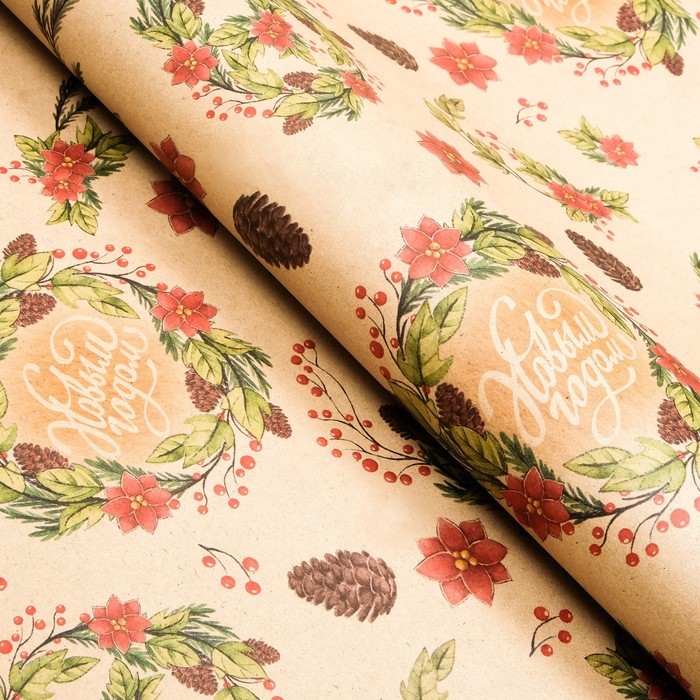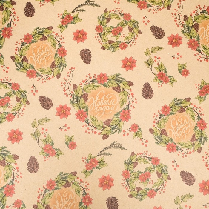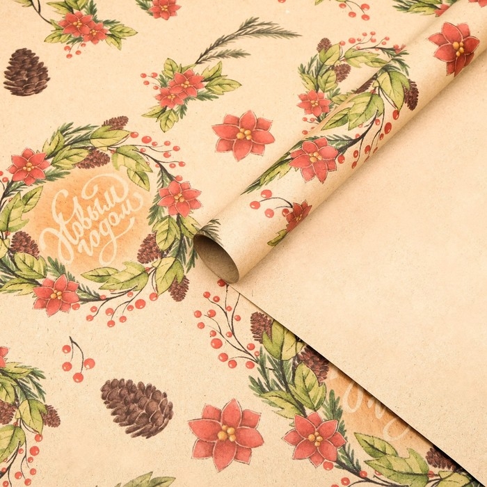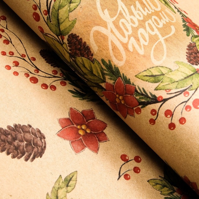 Новый год. Бумага упаковочная крафт "С новым годом!",1 лист, 70 х 100 см
