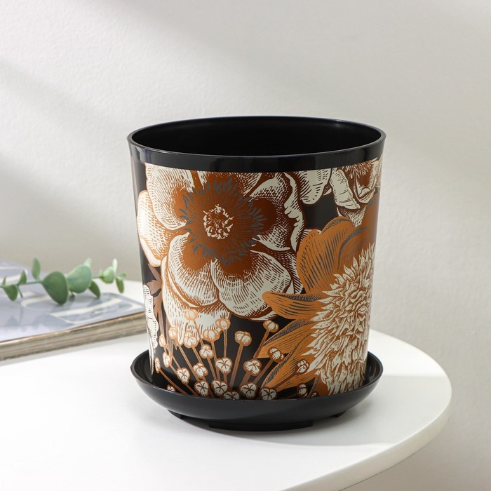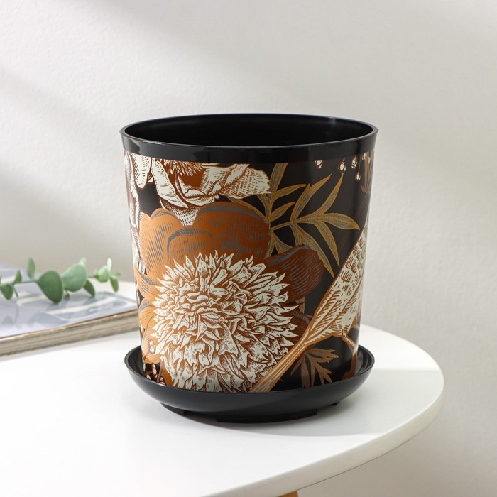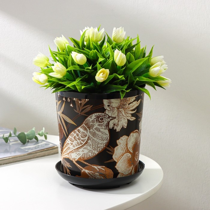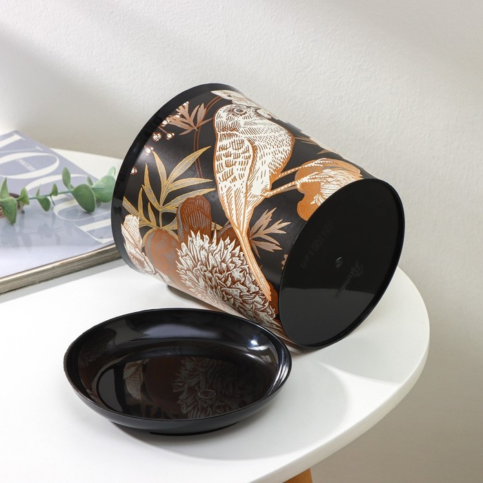 Горшок для цветов с поддоном Доляна «Голди.Птицы», 1,6 л, d=14 см, h=15,5 см, цвет чёрный