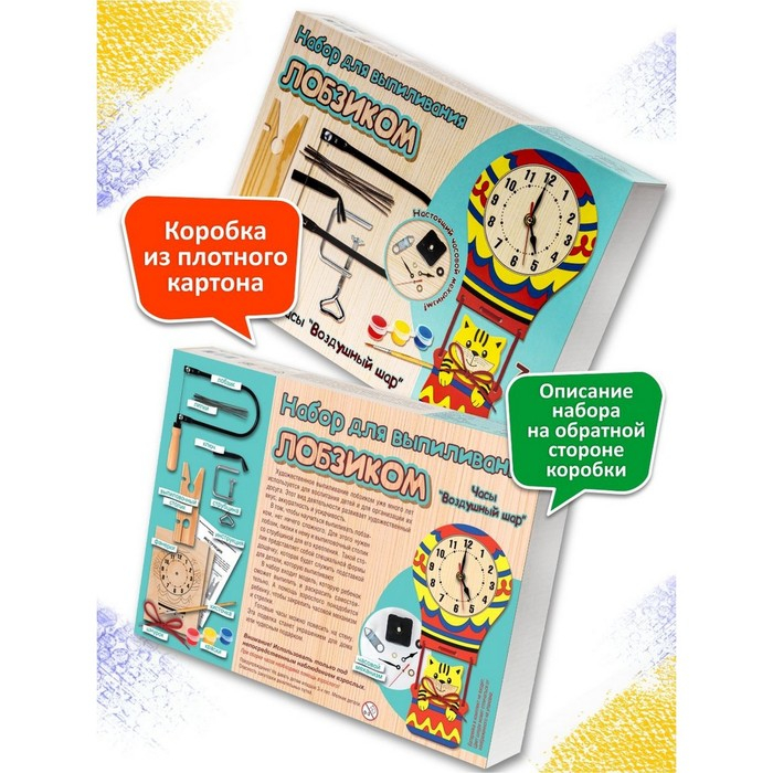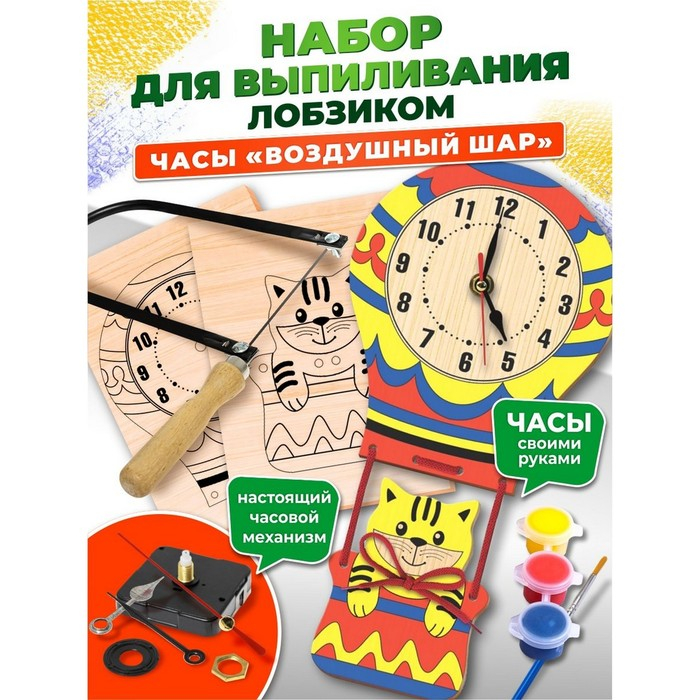 Откройте новый вид досуга для своего ребёнка — художественное выпиливание лобзиком. Набор для выпиливания лобзиком «Часы. Воздушный шар» развивает у ребёнка художественный вкус, аккуратность и усидчивость. В набор входит несложная модель корабля, которую ребёнок сможет выпилить самостоятельно, и подробная инструкция.