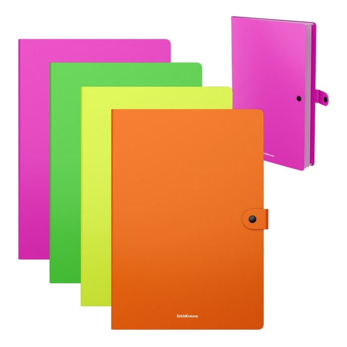 Папка-картотека, А4, 4 отделения, 600 мкм, ErichKrause "Matt Neon", на кнопке, тиснение "песок", микс