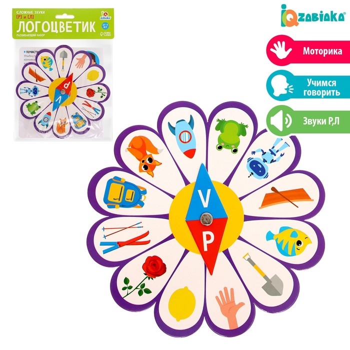 Развивающий набор «Логоцветик» поможет ребёнку подготовиться к школе, расширить словарный запас и потренировать произношение сложных звуков Р и Л.