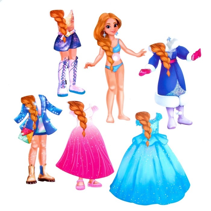 - Задача ребёнка — подобрать стильный наряд куколке на праздник.