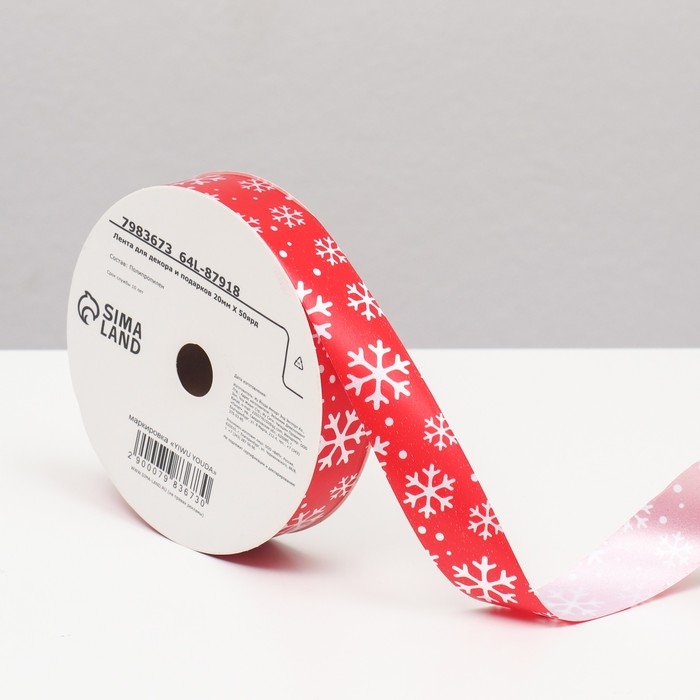 Новый год. Лента для декора и подарков, снежинки, 2 см х 45 м
