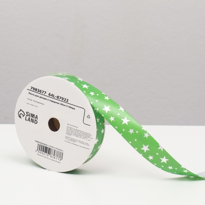 Новый год. Лента для декора и подарков, звезды, 2 см х 45 м