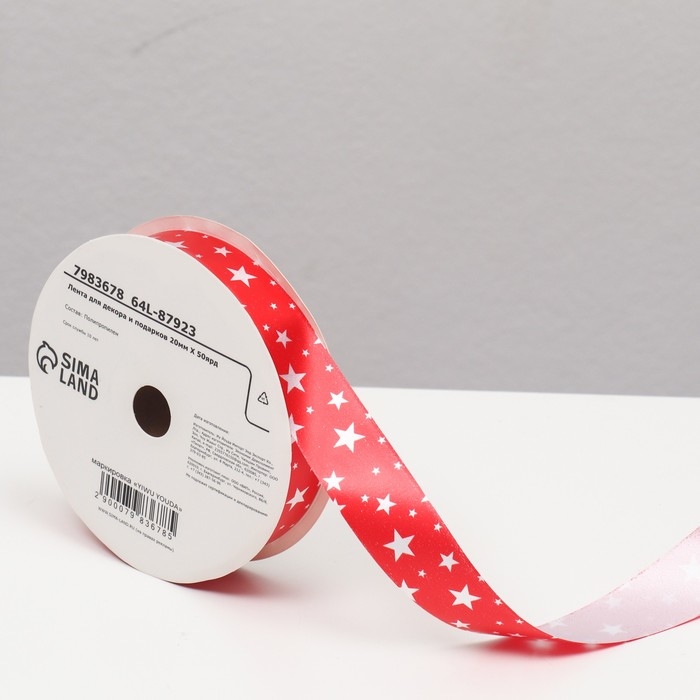 Новый год. Лента для декора и подарков, звезды, 2 см х 45 м