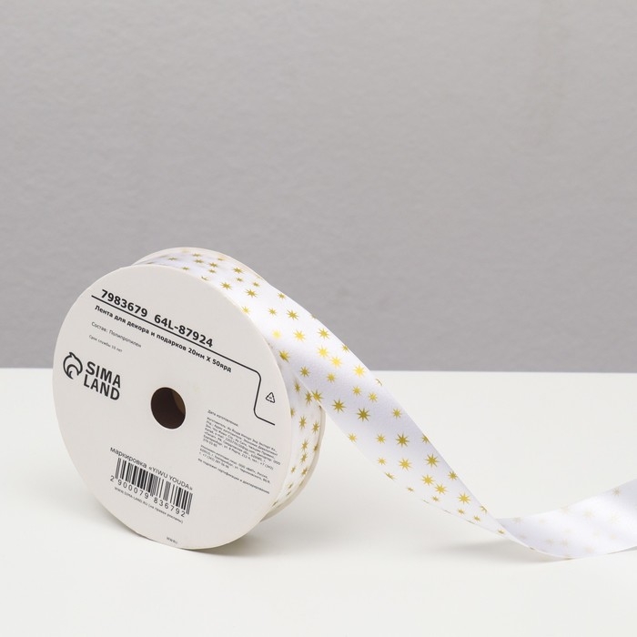 Новый год. Лента для декора и подарков "Звезды", 2 см x 50 м