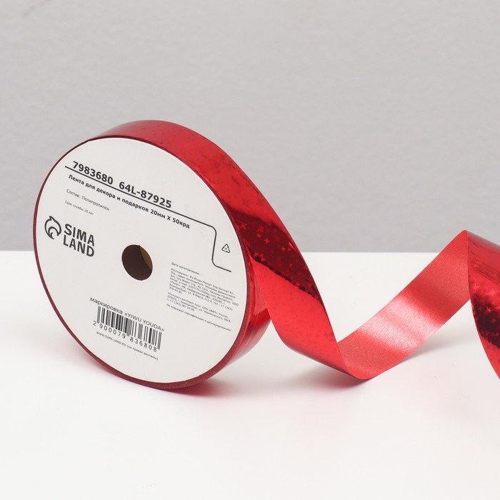 Лента для декора и подарков "Ярко матовая", 1,2см х 45м, красная