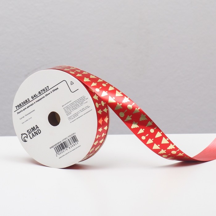 Новый год. Лента для декора и подарков, ёлки, 2 см х 45 м