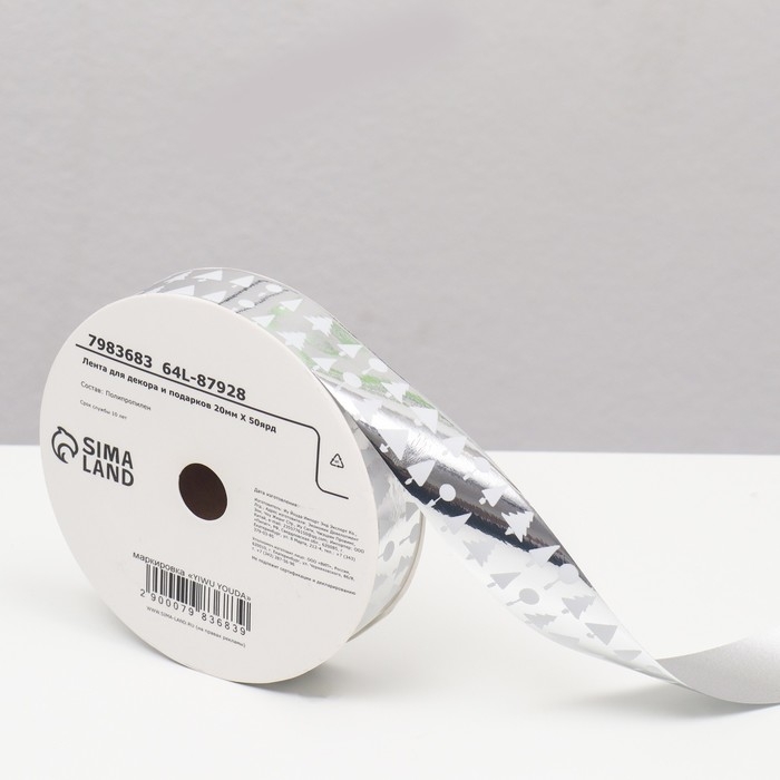 Новый год. Лента для декора и подарков, ёлки, 2 см х 45 м