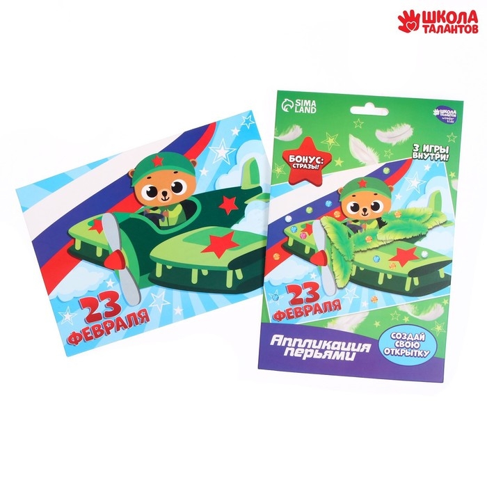 Аппликация перьями и стразами для детей на 23 февраля «Мишка», набор для творчества