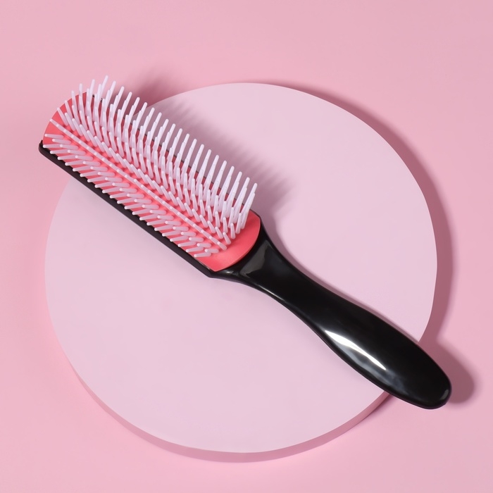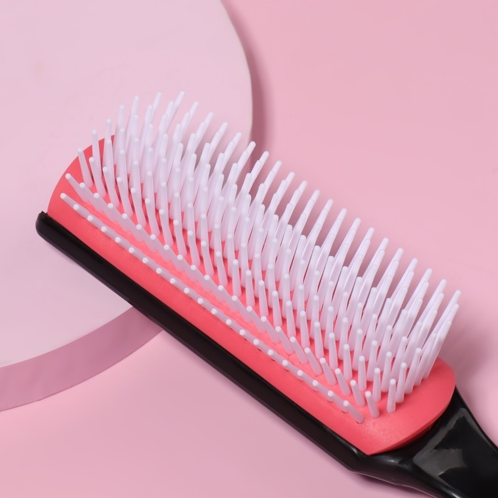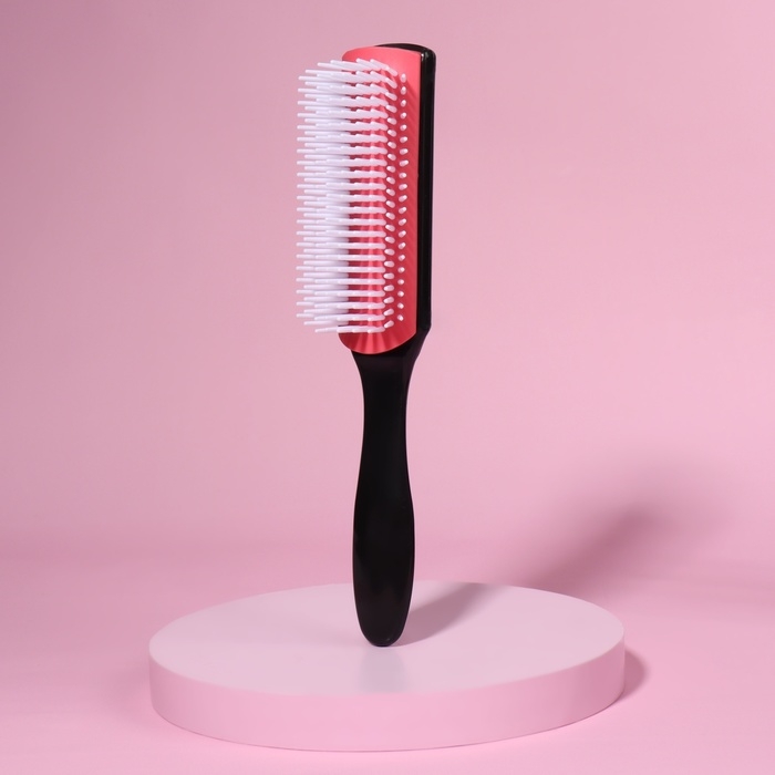 Расчёска массажная, 4,5 × 19 см, цвет чёрный/розовый