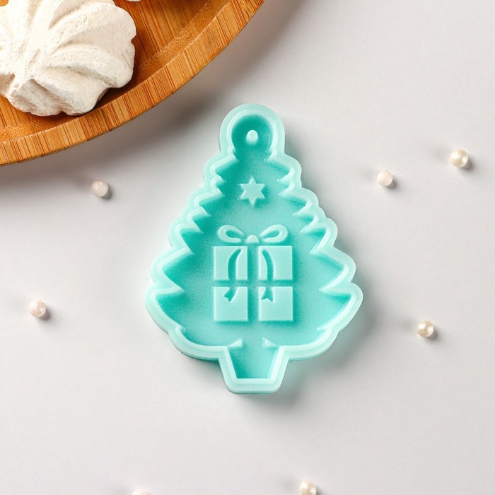 Силиконовый молд «Ёлочка с подарками», 8×5,8×0,8 см, цвет бирюзовый