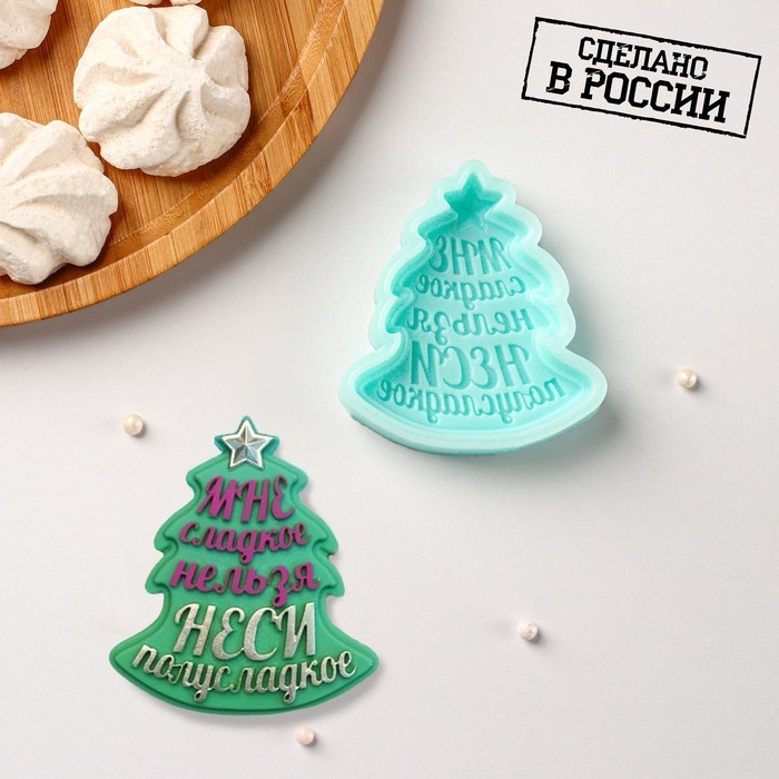 Силиконовый молд «Ёлочка - Мне сладкое нельзя, неси полусладкое», 6,9×6,2×1,3 см, цвет бирюзовый