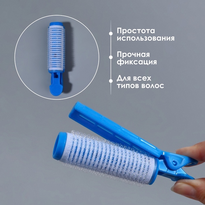 Бигуди «Липучка», d = 6,5 см, 6 см, 6 шт, цвет синий