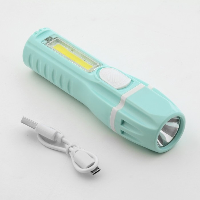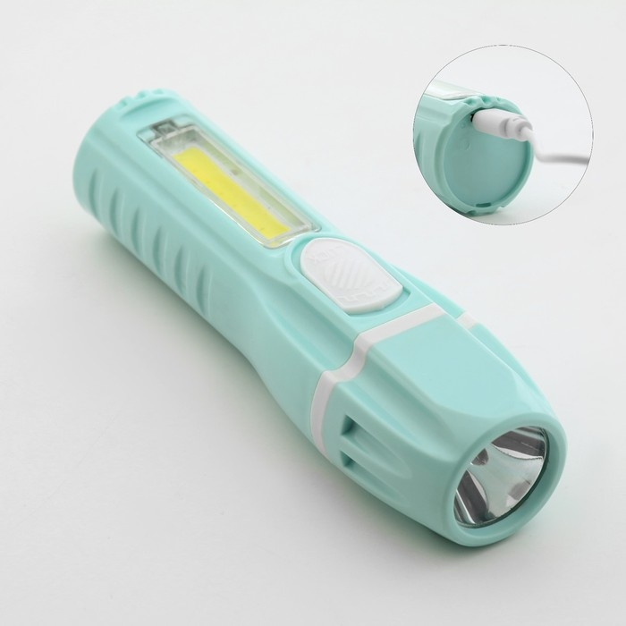 Фонарь ручной аккумуляторный 1 Вт, боковой 3 Вт, COB, 800 мАч, 2 режима, 13.5 х 4 см