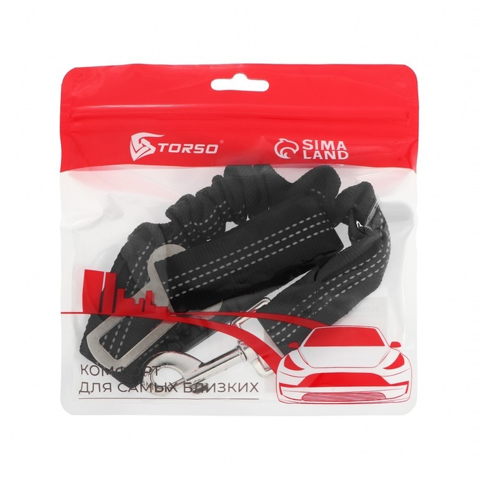 Автомобильный поводок с креплением в замок безопасности. 50-75 см, черный
