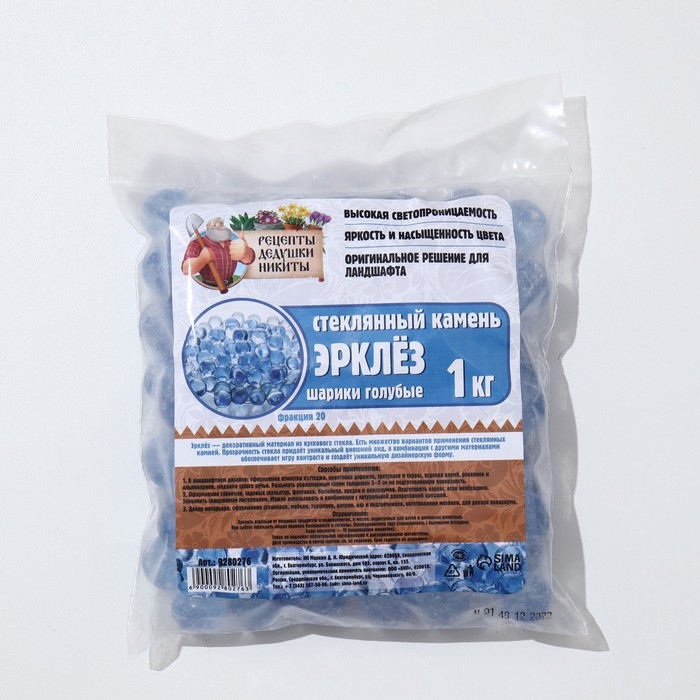 Стеклянные шарики (эрклез) "Рецепты Дедушки Никиты", фр 20 мм, Голубые, 1 кг