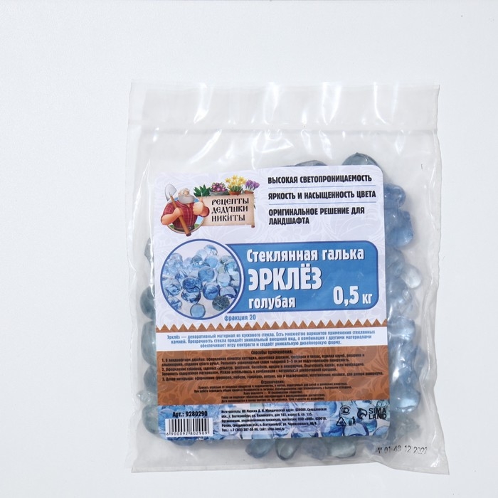 Стеклянная галька (эрклез) "Рецепты Дедушки Никиты", фр 20 мм, Голубые, 0,5 кг