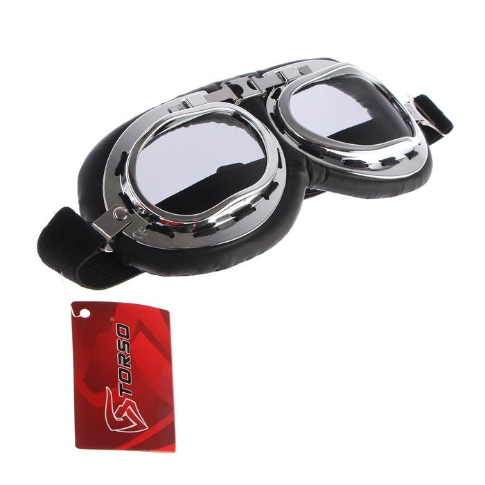 Очки для езды на мототехнике ретро, стекло хром, черные