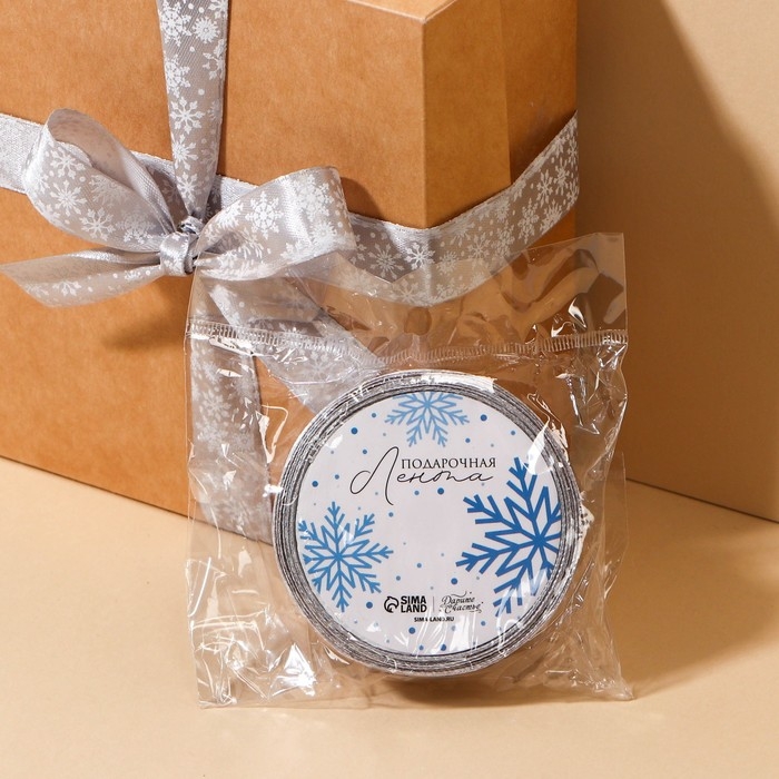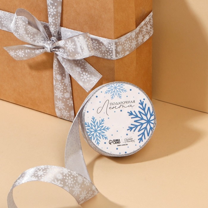 Лента атласная «Белые снежинки», 2 см × 5 м