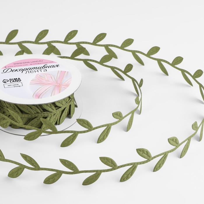 Лента фигурная «Листья», 25 мм, 9 ± 0,5 м, цвет зелёный