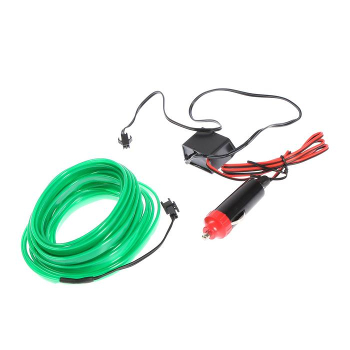Неоновая нить Cartage для подсветки салона, адаптер питания 12 В, 5 м, зеленый