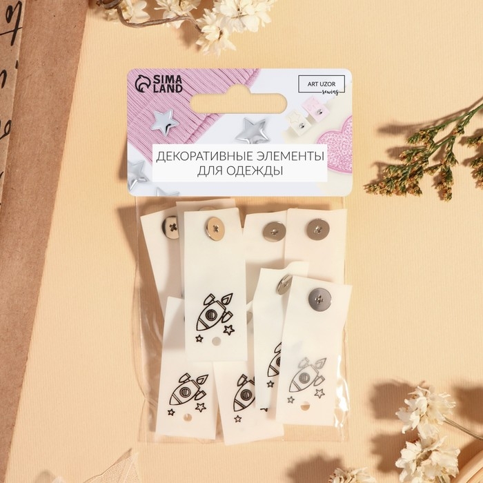 Бирка с кнопкой «Ракета», 5 × 2 см, 10 шт, цвет белый/чёрный