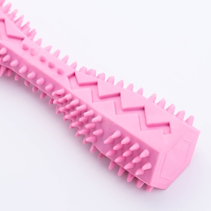 Игрушка для лакомств и сухого корма "Чистилка", TPR, массажная, 14 х 3,6 см, розовая