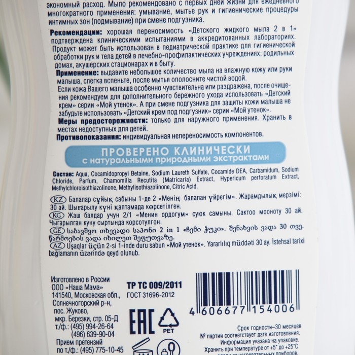 Детское жидкое мыло 2 в1 "Мой утенок", 250 мл