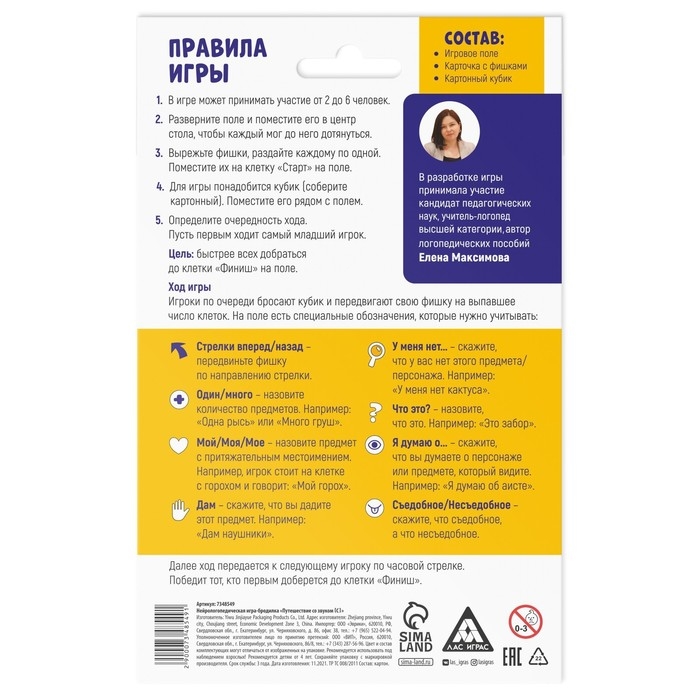 Нейрологопедическая игра-бродилка «Путешествие со звуком [С]», игровое поле, карта с фишками, кубик, 4+