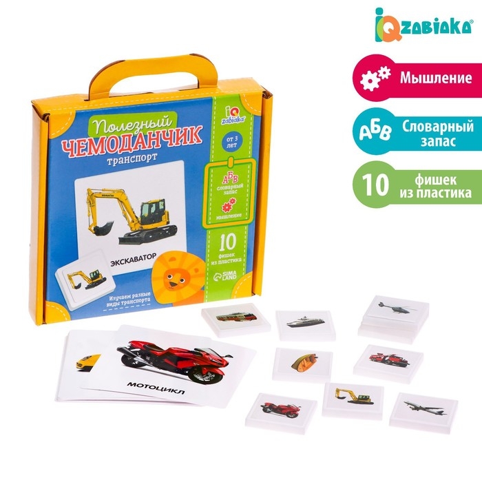 Полезный чемоданчик «Транспорт», пластиковые фишки, карточки