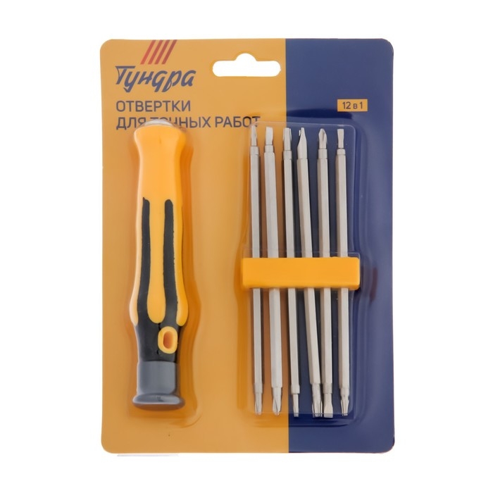 Отвертки для точных работ ТУНДРА, 12 в 1, держатель, двухсторонние биты 6 шт.