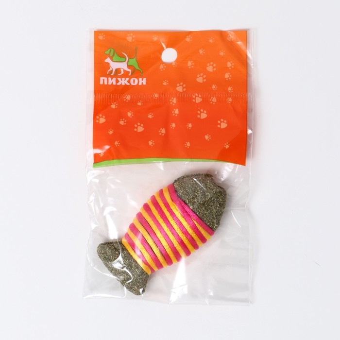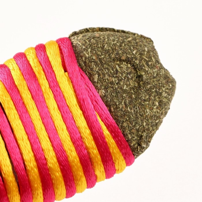 Игрушка для кошек из кошачьей мяты "Полосатая рыбка", 7 см, жёлтая/розовая