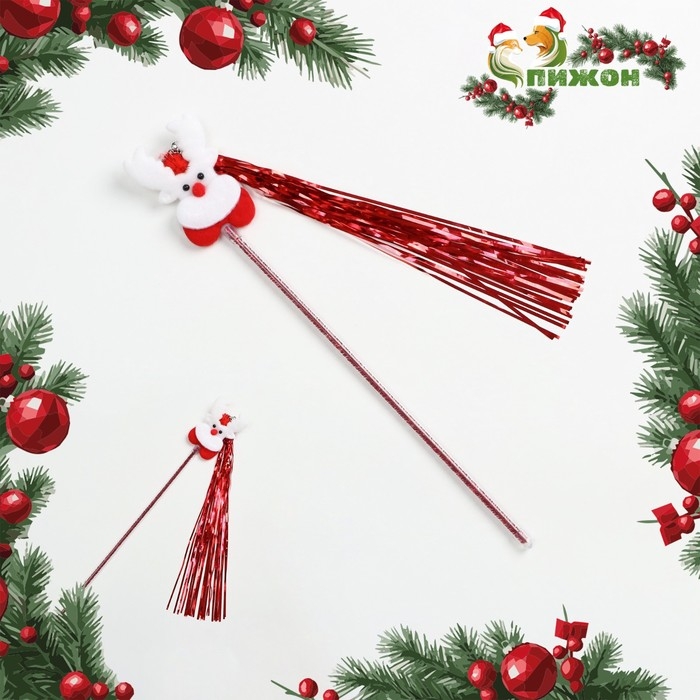 Дразнилка для кошек с бубенчиком "Новогодний заяц", 30 см