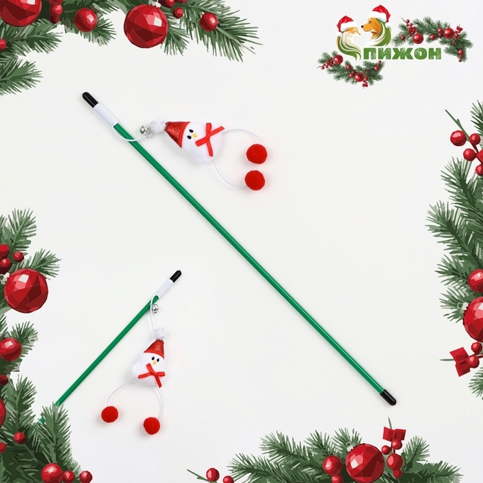 Дразнилка-удочка для кошек с бубенчиком "Снеговик", 40 см