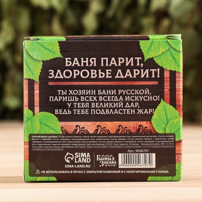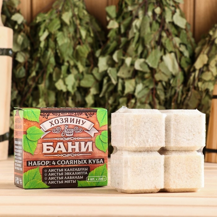 Соляной брикет набор в коробке 4 шт "Хозяину бани" Эвкалипт, календула, лаванда, мята