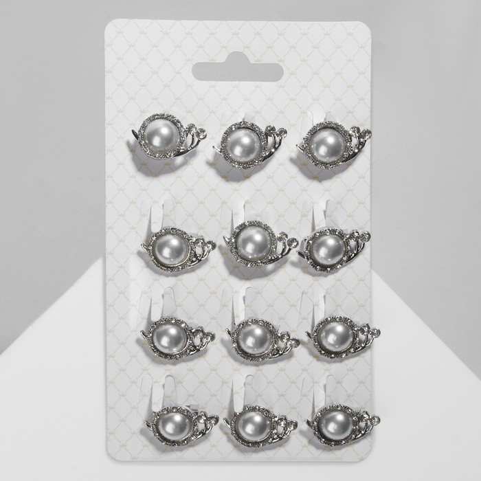 Брошь «Улиточка» с жемчужиной, цвет белый в серебре (неделимая фасовка 12 шт., цена за шт.)