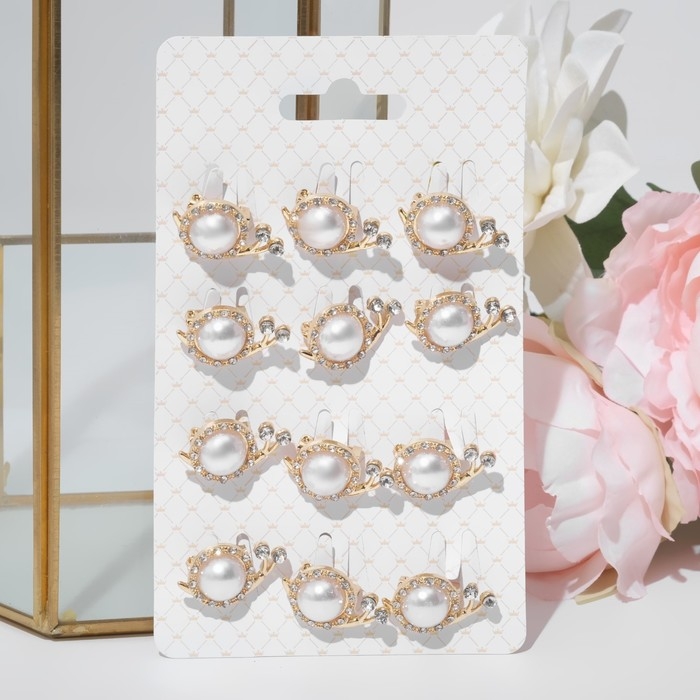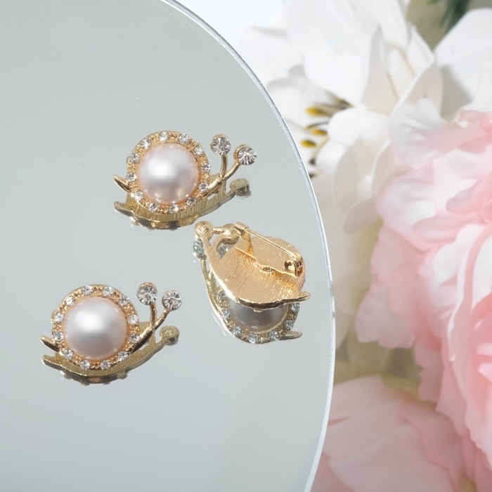 Брошь «Улиточка» с жемчужиной, цвет белый в золоте (неделимая фасовка 12 шт., цена за шт.)