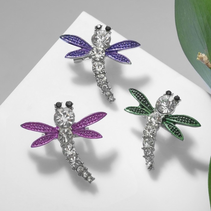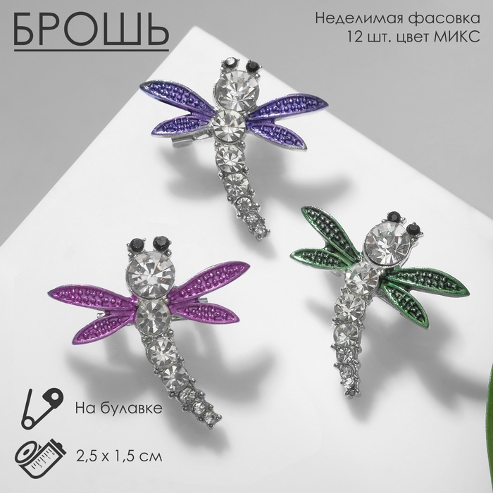 Брошь «Стрекоза» мини, цвет МИКС в серебре (неделимая фасовка 12 шт., цена за шт.)
