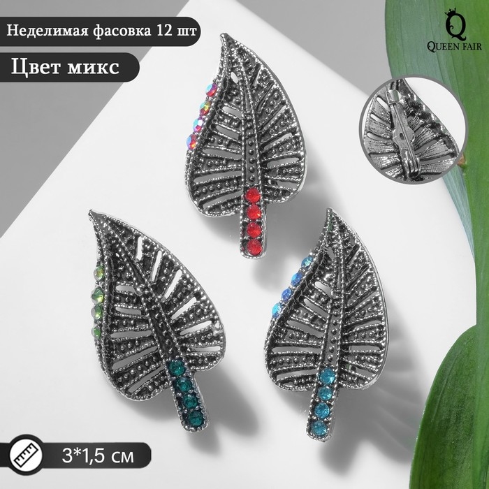 Брошь «Лист» ажурный, цвет МИКС в чернёном серебре (неделимая фасовка 12 шт., цена за шт.)