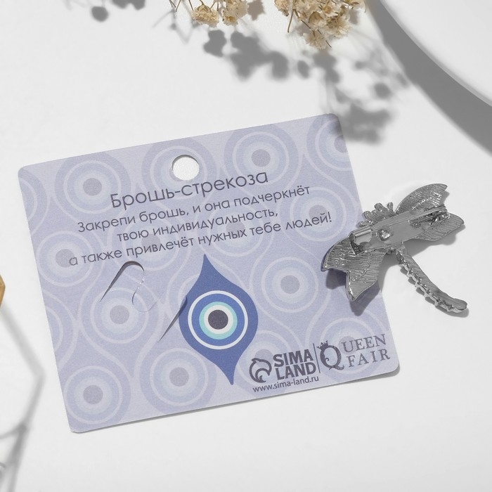 Брошь «От сглаза» стрекоза маленькая, цвет синий в серебре
