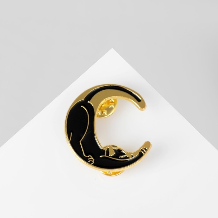 Значок-оберег «Лунный кот», цвет чёрный в золоте